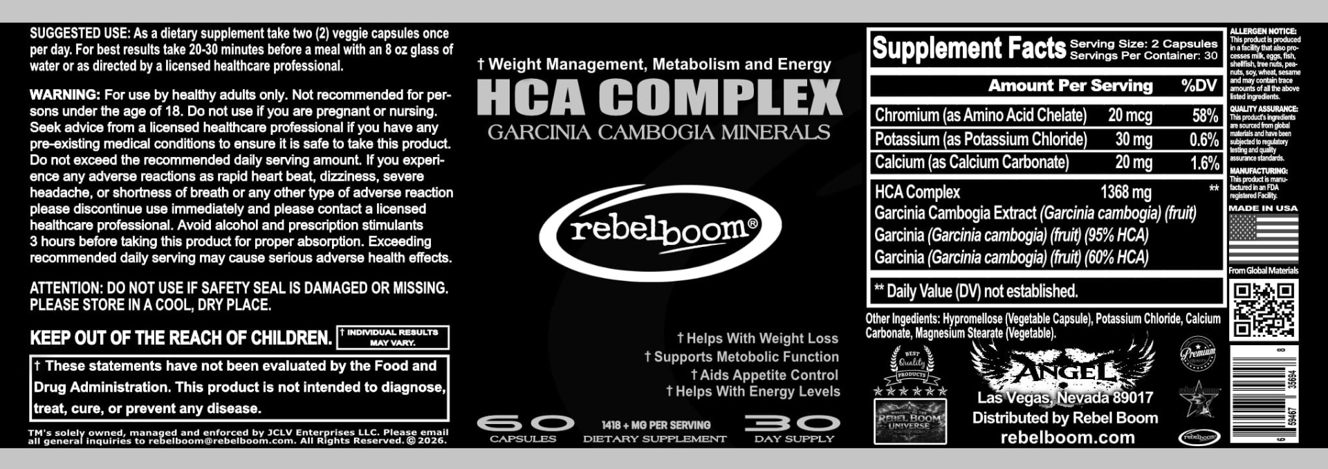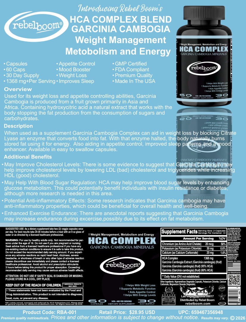 - Fueling Your Love for Thrills: With ingredients that boost mood, energy, and metabolism, Rebel Boom’s HCA Complex gives you the stamina to fully enjoy the dynamic experiences you love.
